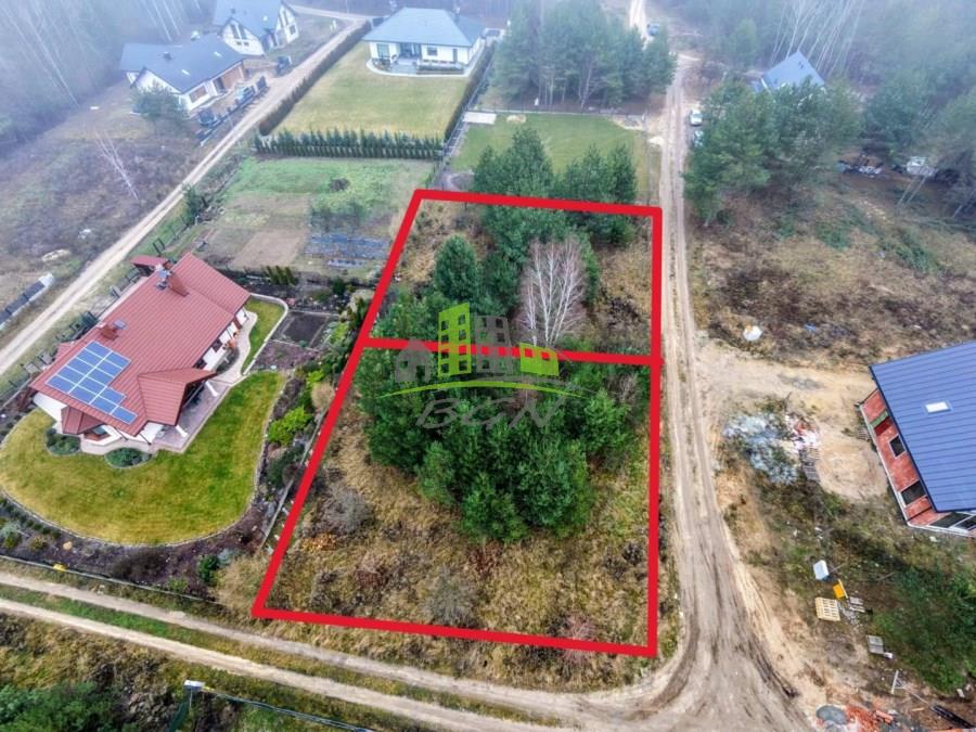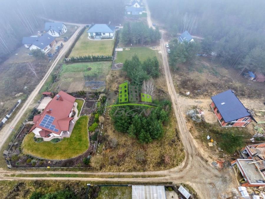 Na działkach rosną sosny , a w okolicy są domy jednorodzinne również otoczone lasem